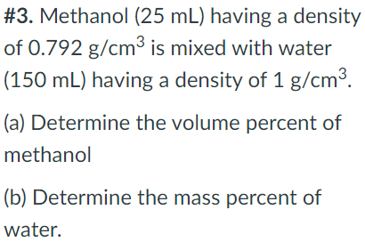 Solved 3 Methanol 25 Ml Having A Density Of 0 792 G Cm3 Chegg Com